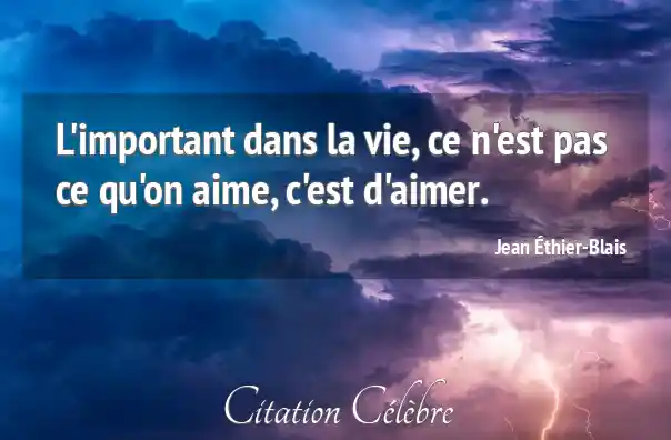 L'important dans la vie, ce n'est pas ce qu'on aime, c'est d'aimer.