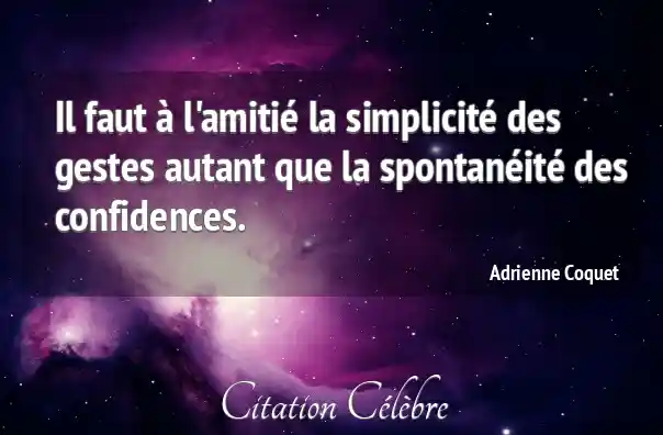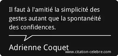 Il faut à l'amitié la simplicité des gestes autant que la spontanéité des confidences.