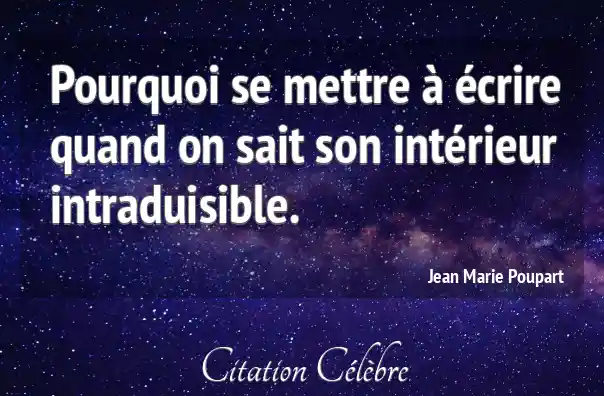 Pourquoi se mettre à écrire quand on sait son intérieur intraduisible.