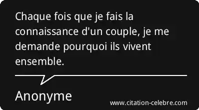 Chaque fois que je fais la connaissance d'un couple, je me demande pourquoi ils vivent ensemble.