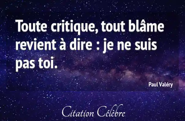 Toute critique, tout blâme revient à dire : je ne suis pas toi.