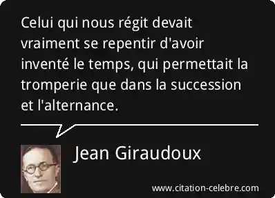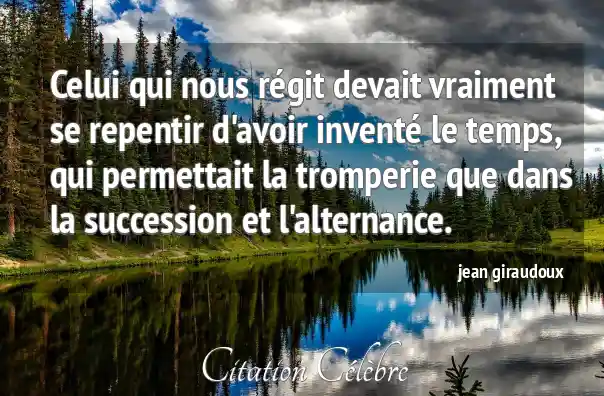 Celui qui nous régit devait vraiment se repentir d'avoir inventé le temps, qui permettait la tromperie que dans la succession et l'alternance.