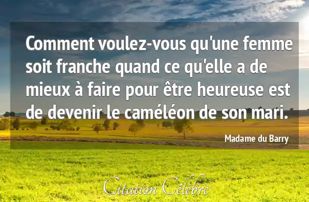 Comment voulez-vous qu'une femme soit franche quand ce qu'elle a de mieux à faire pour être heureuse est de devenir le caméléon de son mari.