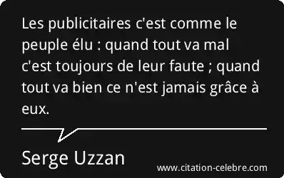 Les publicitaires c'est comme le peuple élu : quand tout va mal c'est toujours de leur faute ; quand tout va bien ce n'est jamais grâce à eux.