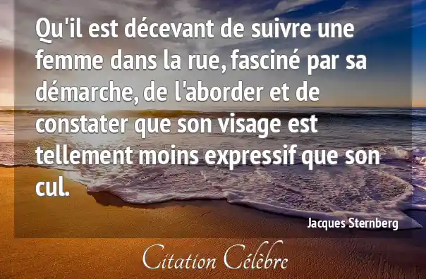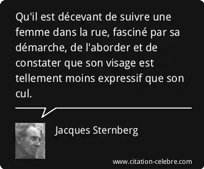 Qu'il est décevant de suivre une femme dans la rue, fasciné par sa démarche, de l'aborder et de constater que son visage est tellement moins expressif que son cul.