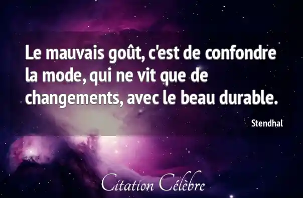 Le mauvais goût, c'est de confondre la mode, qui ne vit que de changements, avec le beau durable.