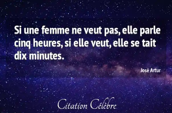 Si une femme ne veut pas, elle parle cinq heures, si elle veut, elle se tait dix minutes.