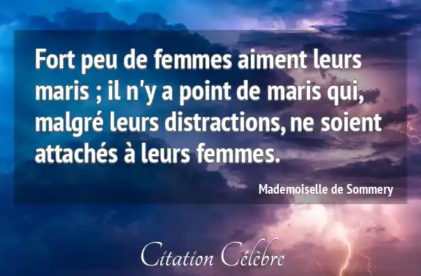 Fort peu de femmes aiment leurs maris ; il n'y a point de maris qui, malgré leurs distractions, ne soient attachés à leurs femmes.