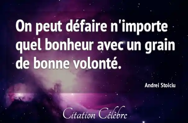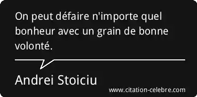 On peut défaire n'importe quel bonheur avec un grain de bonne volonté.
