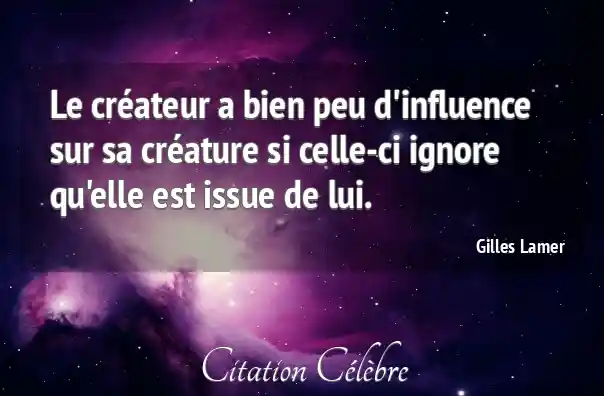 Citation Gilles Lamer bien : Le créateur a bien peu d'influence sur sa créature si...