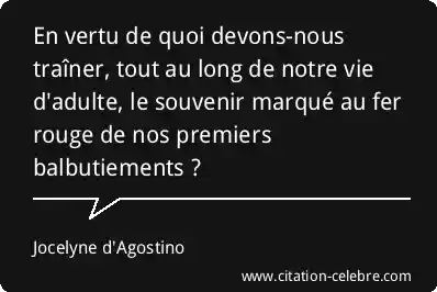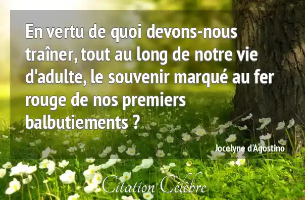 En vertu de quoi devons-nous traîner, tout au long de notre vie d'adulte, le souvenir marqué au fer rouge de nos premiers balbutiements ?