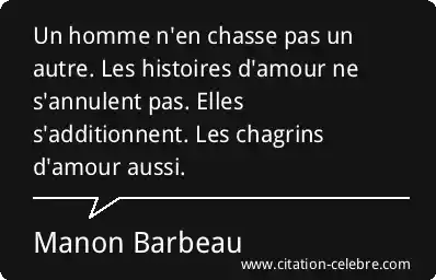 Citation Manon Barbeau amour : Un homme n'en chasse pas un autre. Les histoires d'amour...
