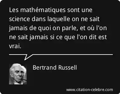 Les mathématiques sont une science dans laquelle on ne sait jamais de quoi on parle, et où l'on ne sait jamais si ce que l'on dit est vrai.