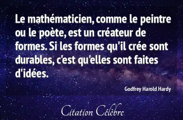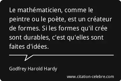 Le mathématicien, comme le peintre ou le poète, est un créateur de formes. Si les formes qu'il crée sont durables, c'est qu'elles sont faites d'idées.