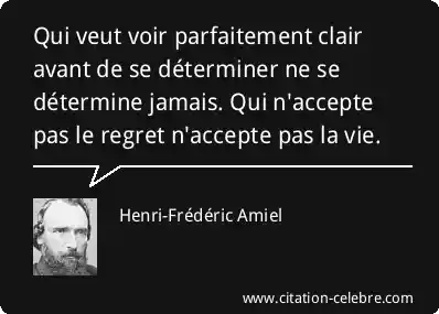 Qui veut voir parfaitement clair avant de se déterminer ne se détermine jamais. Qui n'accepte pas le regret n'accepte pas la vie.