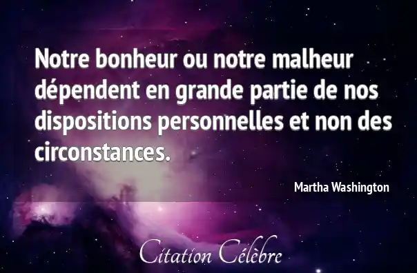Notre bonheur ou notre malheur dépendent en grande partie de nos dispositions personnelles et non des circonstances.
