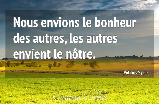 Nous envions le bonheur des autres, les autres envient le nôtre.