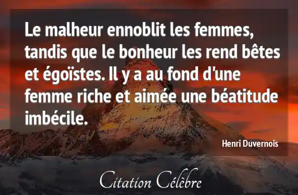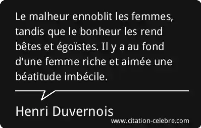Le malheur ennoblit les femmes, tandis que le bonheur les rend bêtes et égoïstes. Il y a au fond d'une femme riche et aimée une béatitude imbécile.