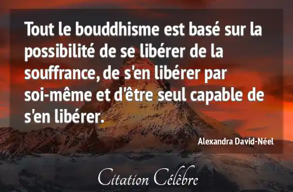Tout le bouddhisme est basé sur la possibilité de se libérer de la souffrance, de s'en libérer par soi-même et d'être seul capable de s'en libérer.
