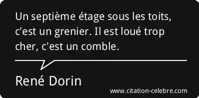 Un septième étage sous les toits, c'est un grenier. Il est loué trop cher, c'est un comble.
