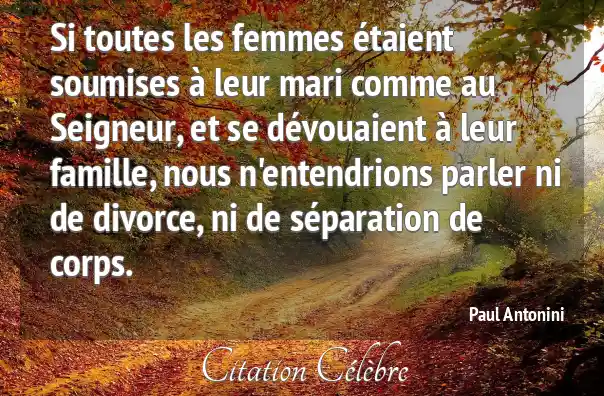 Si toutes les femmes étaient soumises à leur mari comme au Seigneur, et se dévouaient à leur famille, nous n'entendrions parler ni de divorce, ni de séparation de corps.
