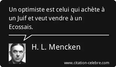 Un optimiste est celui qui achète à un Juif et veut vendre à un Ecossais.