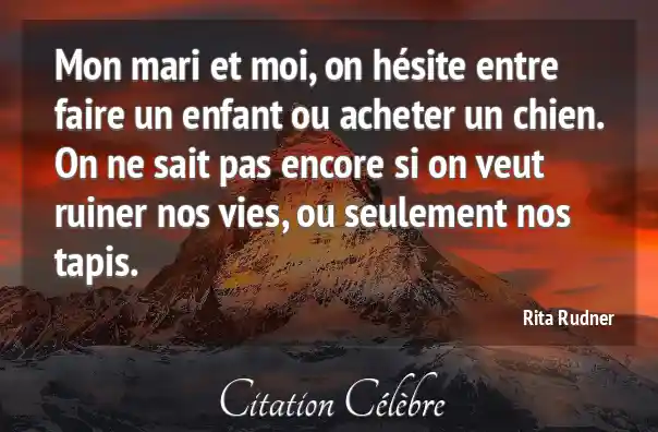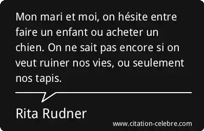 Mon mari et moi, on hésite entre faire un enfant ou acheter un chien. On ne sait pas encore si on veut ruiner nos vies, ou seulement nos tapis.