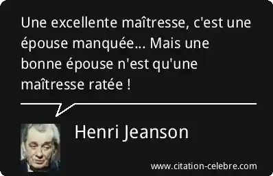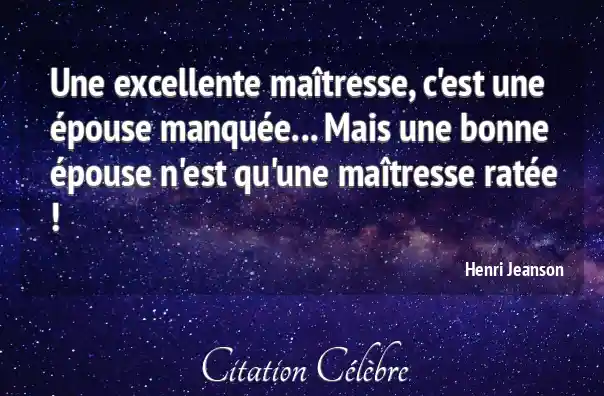 Une excellente maîtresse, c'est une épouse manquée... Mais une bonne épouse n'est qu'une maîtresse ratée !