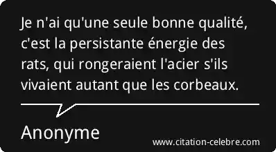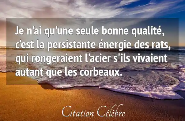 Je n'ai qu'une seule bonne qualité, c'est la persistante énergie des rats, qui rongeraient l'acier s'ils vivaient autant que les corbeaux.