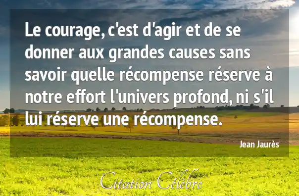 Le courage, c'est d'agir et de se donner aux grandes causes sans savoir quelle récompense réserve à notre effort l'univers profond, ni s'il lui réserve une récompense.