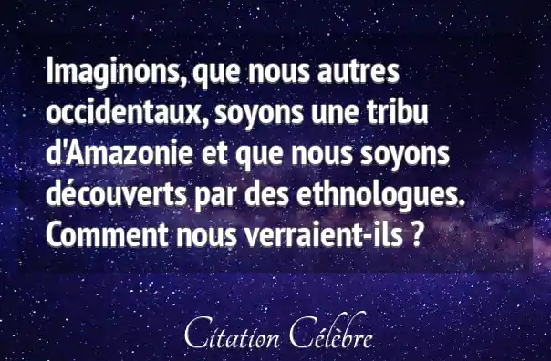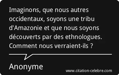 Imaginons, que nous autres occidentaux, soyons une tribu d'Amazonie et que nous soyons découverts par des ethnologues. Comment nous verraient-ils ?