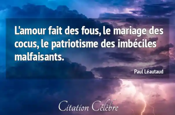 L'amour fait des fous, le mariage des cocus, le patriotisme des imbéciles malfaisants.