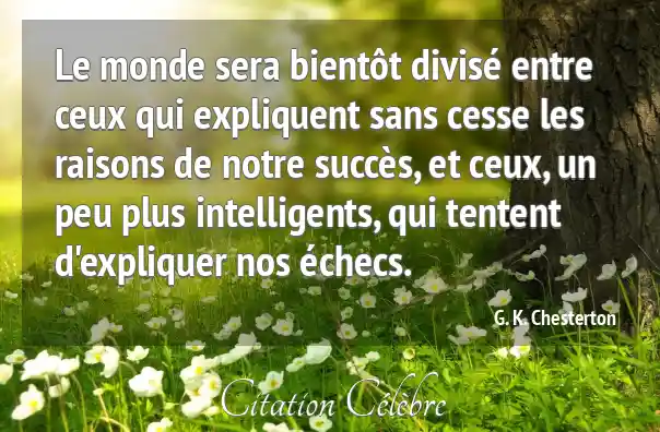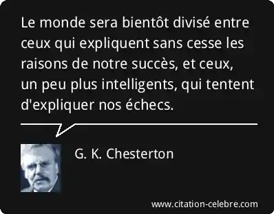 Le monde sera bientôt divisé entre ceux qui expliquent sans cesse les raisons de notre succès, et ceux, un peu plus intelligents, qui tentent d'expliquer nos échecs.
