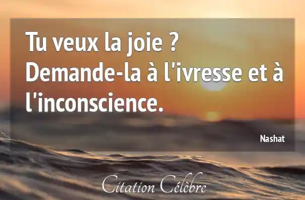 Tu veux la joie ? Demande-la à l'ivresse et à l'inconscience.