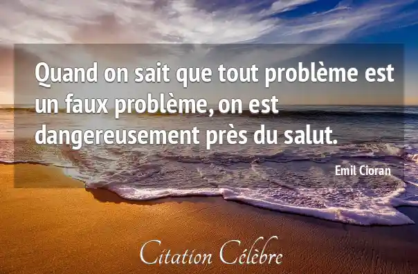 Quand on sait que tout problème est un faux problème, on est dangereusement près du salut.