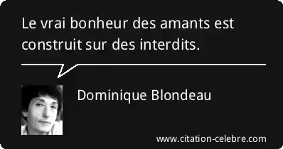 Citation Dominique Blondeau bonheur : Le vrai bonheur des amants est construit sur des interdits....