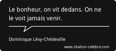 Le bonheur, on vit dedans. On ne le voit jamais venir.
