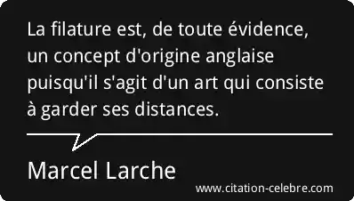 La filature est, de toute évidence, un concept d'origine anglaise puisqu'il s'agit d'un art qui consiste à garder ses distances.