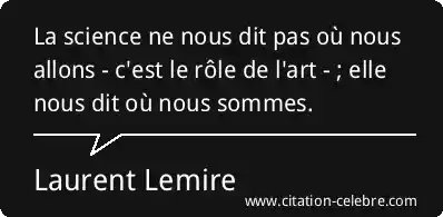 La science ne nous dit pas où nous allons - c'est le rôle de l'art - ; elle nous dit où nous sommes.