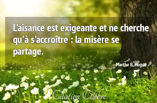 L'aisance est exigeante et ne cherche qu'à s'accroître : la misère se partage.