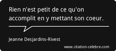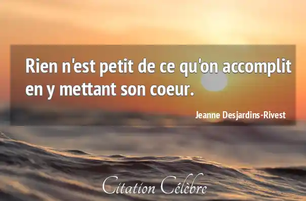 Rien n'est petit de ce qu'on accomplit en y mettant son coeur.