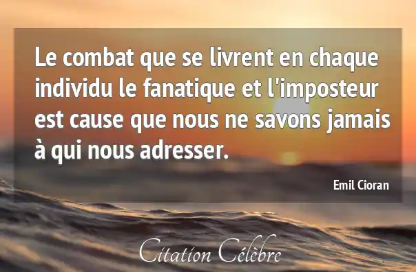 Le combat que se livrent en chaque individu le fanatique et l'imposteur est cause que nous ne savons jamais à qui nous adresser.