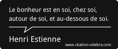Le bonheur est en soi, chez soi, autour de soi, et au-dessous de soi.