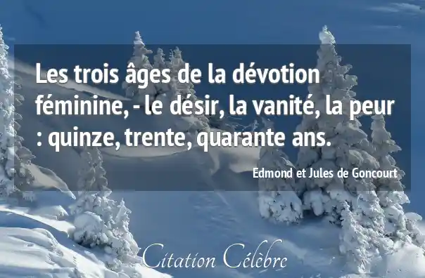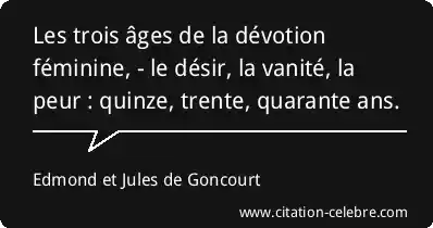 Les trois âges de la dévotion féminine, - le désir, la vanité, la peur : quinze, trente, quarante ans.