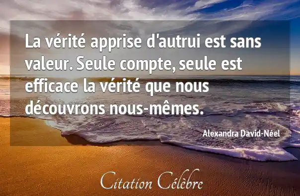 La vérité apprise d'autrui est sans valeur. Seule compte, seule est efficace la vérité que nous découvrons nous-mêmes.