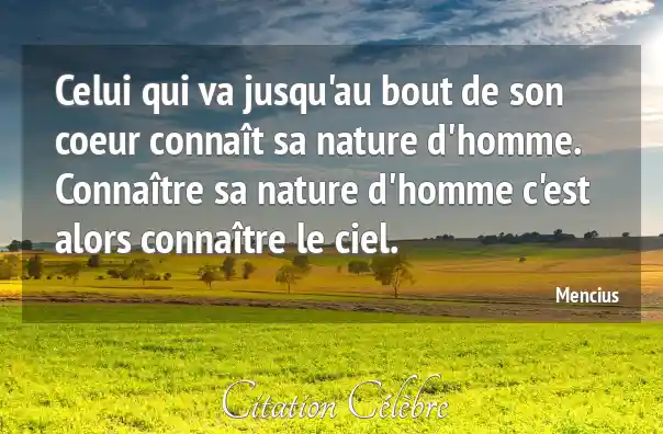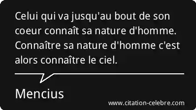 Celui qui va jusqu'au bout de son coeur connaît sa nature d'homme. Connaître sa nature d'homme c'est alors connaître le ciel.