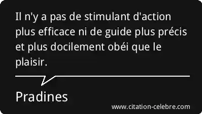 Il n'y a pas de stimulant d'action plus efficace ni de guide plus précis et plus docilement obéi que le plaisir.