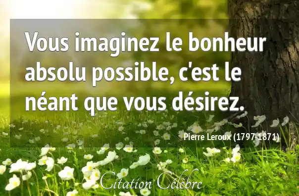 Vous imaginez le bonheur absolu possible, c'est le néant que vous désirez.