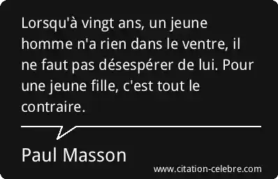 Lorsqu'à vingt ans, un jeune homme n'a rien dans le ventre, il ne faut pas désespérer de lui. Pour une jeune fille, c'est tout le contraire.