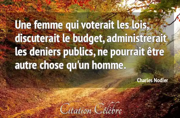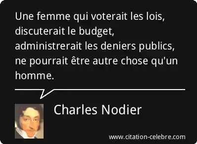 Une femme qui voterait les lois, discuterait le budget, administrerait les deniers publics, ne pourrait être autre chose qu'un homme.